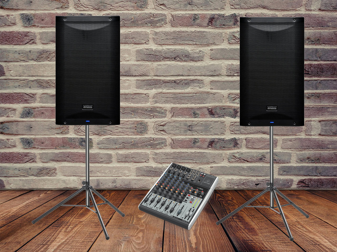 Paket čine dvije aktivne zvučne kutije snage 500 watt (zvučnik 1×12″) + analogna mikseta do 12 kanala, uz pripadajuće kablove i stalke. Navedeni razglas pokriva do 100 ljudi u zatvorenom prostoru.